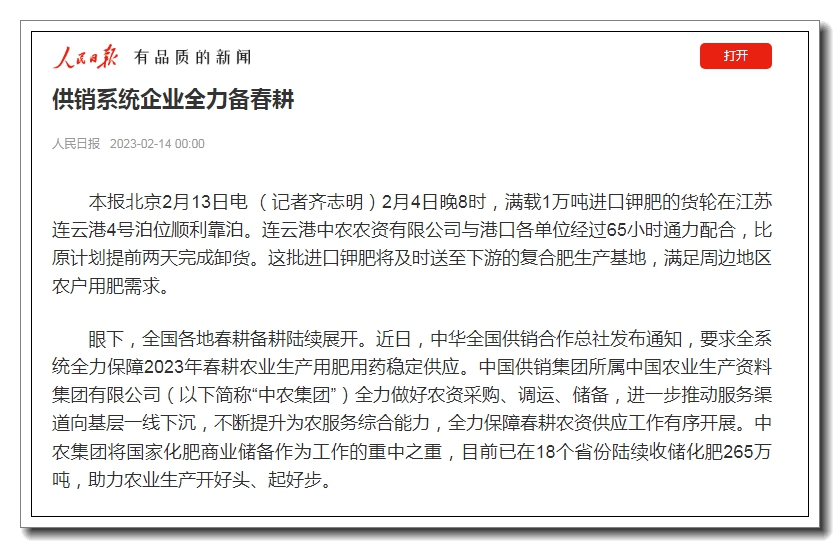 【人民日報(bào)客戶端】供銷系統(tǒng)企業(yè)全力備春耕