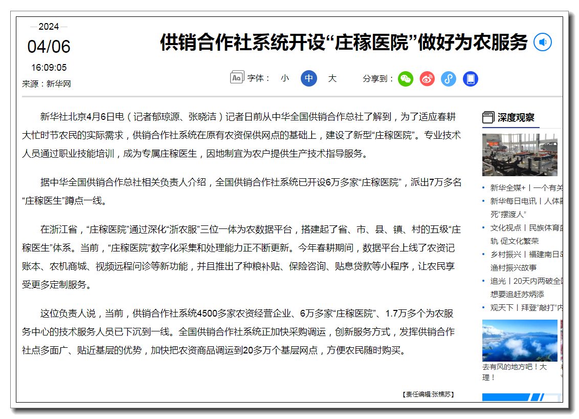 【新華社】供銷(xiāo)合作社系統(tǒng)開(kāi)設(shè)“莊稼醫(yī)院”做好為農(nóng)服務(wù)
