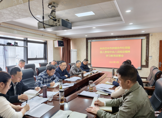 會議傳達(dá)學(xué)習(xí)了市委黨的建設(shè)領(lǐng)導(dǎo)小組(市委市政府黨風(fēng)廉政建設(shè)責(zé)任制領(lǐng)導(dǎo)小組)會議暨全市黨建引領(lǐng)基層治理協(xié)調(diào)機(jī)制2025年第一次全體會議精神,組織學(xué)習(xí)了《省供銷社貫徹落實中央八項規(guī)定精神和省委、省政府規(guī)定的實施辦法》《巴中市深入貫徹中央八項規(guī)定精神學(xué)習(xí)教育有關(guān)問題答復(fù)(一)》等文件精神,審議通過了市供銷社《深入貫徹中央八項規(guī)定精神學(xué)習(xí)教育的實施方案》。