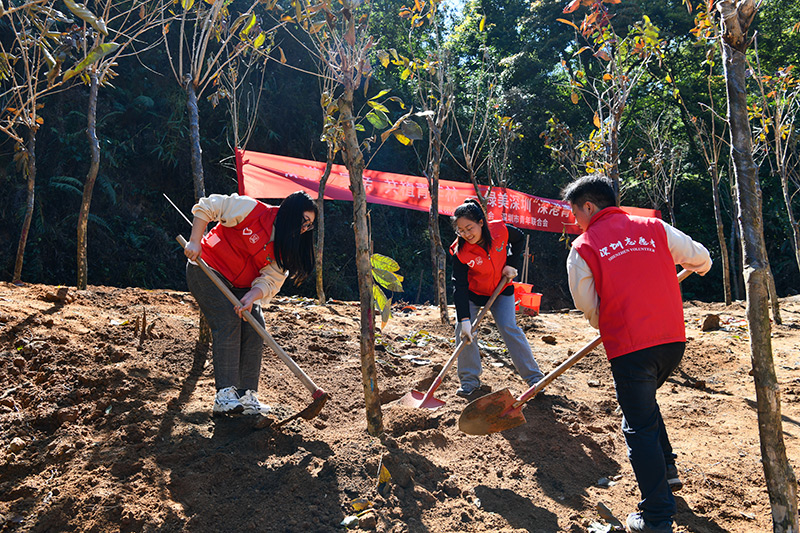 3月12日,深港青年代表在深圳陽(yáng)臺(tái)山森林公園參與植樹(shù)。50余名深港青年代表、60余名少先隊(duì)員12日在深圳陽(yáng)臺(tái)山森林公園共同種下101株大葉紫薇,并為“深港青年林” “紅領(lǐng)巾林”揭牌,“植”此青綠,見(jiàn)證深港青年友誼常青。